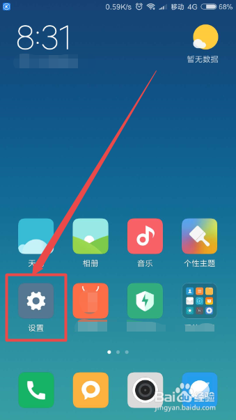 然后点击手机桌面上的设置图标来打开设置页面。