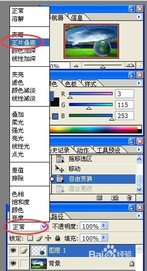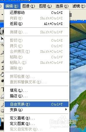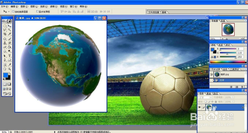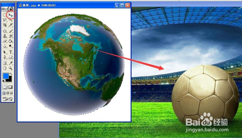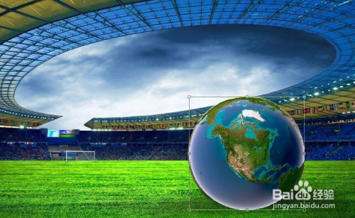 点击“编纂”菜单下的“自由变换”,将地球图片,调整到跟足球一样的大小。