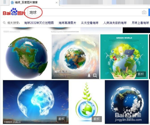 用百度搜刮一张地球的图片,并保留到电脑上备用。