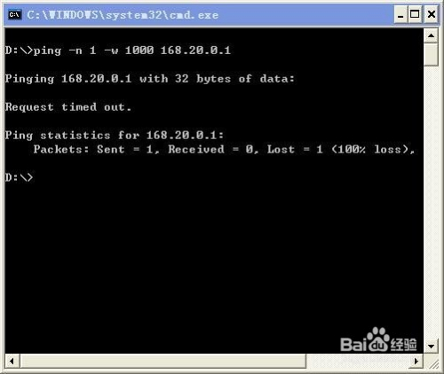 for /l %%i in (1,1,10) do ping -n 1 -w 1000 168.20.0.1>nul