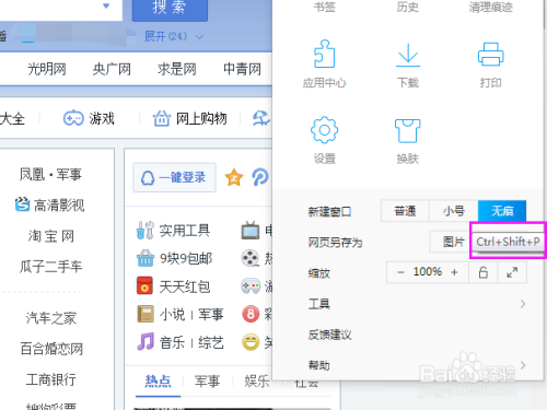 或者按键盘上的快捷键“Ctrl+shift+P”。分歧的浏览器新建的快捷键是纷歧样的哦!