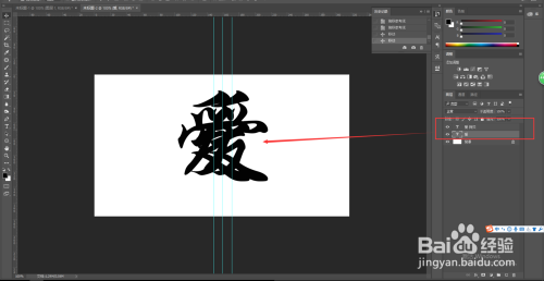 选中图层1,Ctrl+J复制一个图层发生图层2,然后将图层1的小眼睛关失落,在清晰参考线。如许,一个填充的分手文字就建造完当作了。