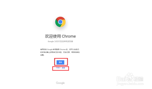 安装完当作后,主动打开了一个接待界面,若是有谷歌账号可以点击:登录,若是无法打开登录界面或者没有账号,可以点击:不消了,感谢。直接打开浏览器进行利用。