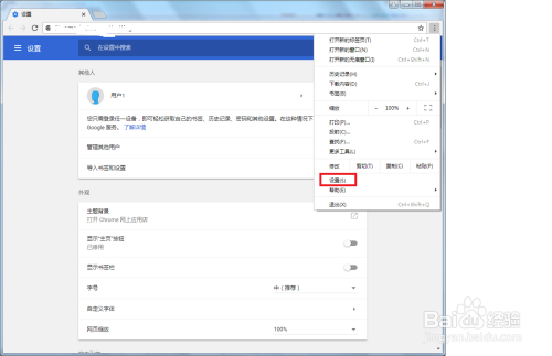 在打开的谷歌浏览器的搜刮栏右边的三点图标——选择设置——这时就可以设置外不雅、启动设置以及高级设置等。除了设置之外还可以点击利用更多东西。