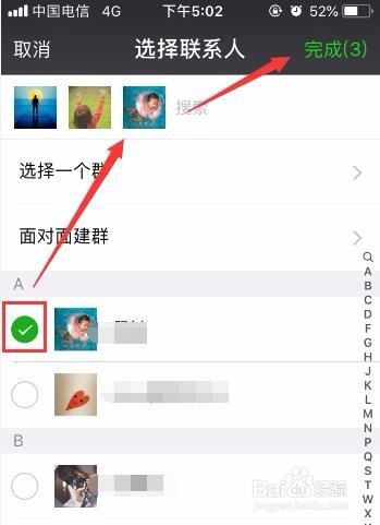选中需要插手群聊的老友后,再点击右上角的完当作就可以建立微信的群聊群了。