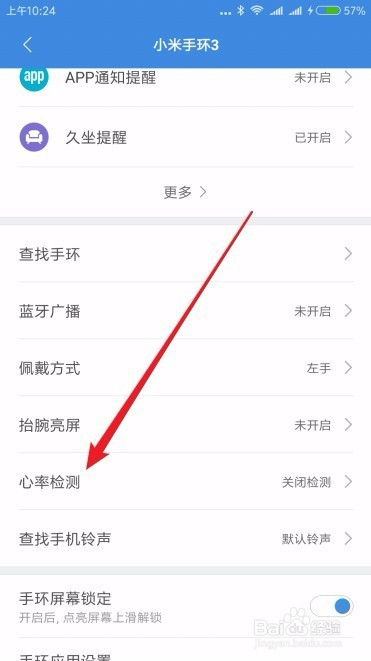 这时就会打开小米手环3的设置页面,我们找到“心率检测”设置项。