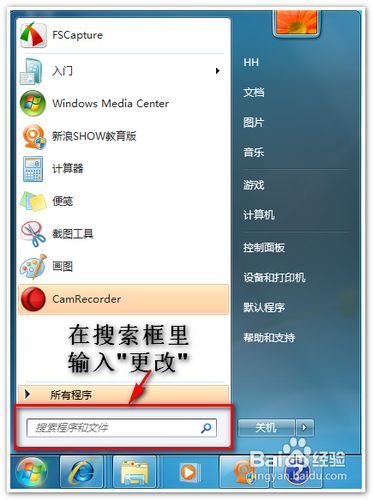 第3步 在搜索框里输入“更改”