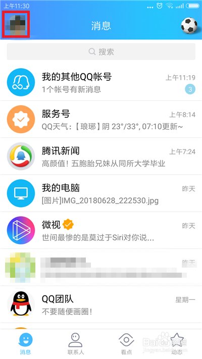 打开手机上的QQ并登岸本身的账号,在首页点击左上方的头像。