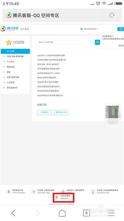打开百度搜刮【QQ客服德律风】,点击【腾讯客服-QQ空间专区】。