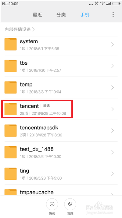 在手机下方找到【tencent】选项并点击,这是腾讯文件夹。