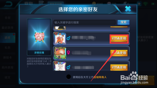 再选摘要把浓情玫瑰送给哪个老友,点击对他利用。