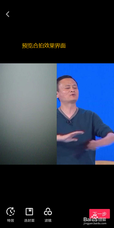 进度条走完今后,就会主动弹出如下图的界面,我们点击对勾图标即可,然后还可以预览合拍结果,感受拍摄结果对劲的话就可以去发布了,同时系统也会将此合拍信息@给对方,我们还可以@此视频给我们的老友,如图所示......