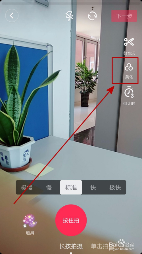 然后我们就可以正常起头拍摄了,如许拍出来的人像更美。拍摄完当作后我们点击下一步。