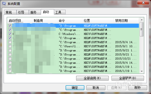 在系统设置装备摆设对话框的,启动选项卡中,找到对应法式,并去失落对应法式前的勾选;