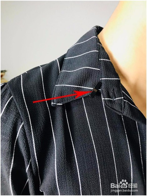 9. 将麦克风从衣服里面穿过,把领夹麦夹在衣领处,注重要夹稳,以免发生失落落,出格是有太年夜活动的环境下