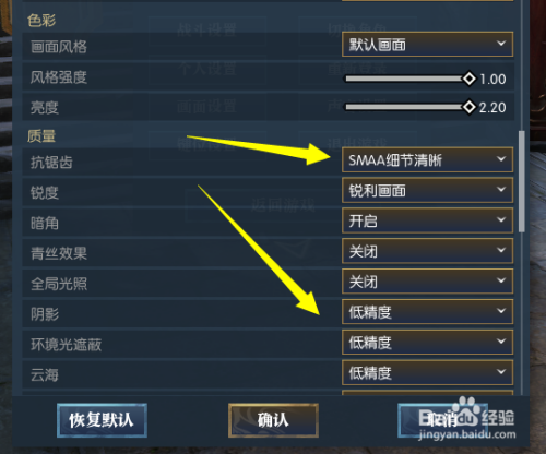 若是仍是不可,调节抗锯齿,暗影等,降低。
