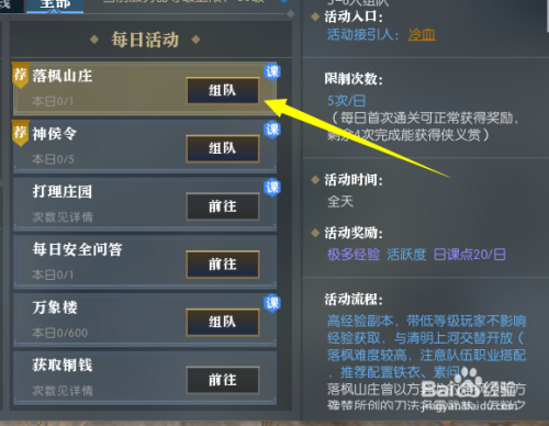 点击一个活动,可以看到右侧的奖励,奖励活跃度的就可以加入。