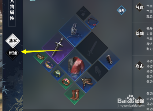 在弹出的菜单中,点击右侧的旅途按钮。