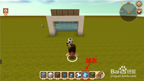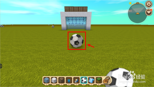 踢球要有足球和球衣,并将它们放到物品栏中。先选中足球用鼠尺度心对准要放置的位置。