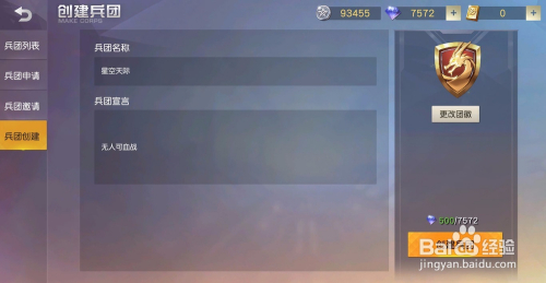 建立兵团当作功就可以招人等,这里可以更改兵团名字和团徽等。