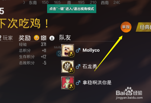 而是期待几秒钟回到战绩的页面会看到一个举报的按钮。