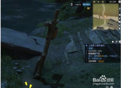 这个线索发现后会获得新的脚印(位置580,354摆布),继续对脚印风水术呈现新脚印,直到河岸边的木桩这(531.349)利用风水术,会呈现一双脚印,之后标的目的前走上桥利用风水术