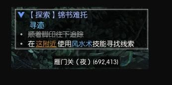 在接取使命后,按照使命提醒鄙人图位置利用风水术,可获得线索