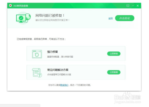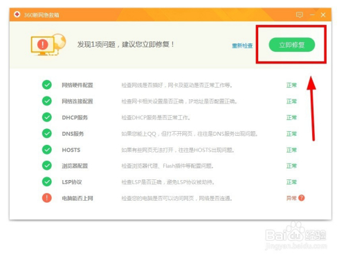 用断网急救箱来诊断,发现问题后,点击“当即修复”,修复完当作即可