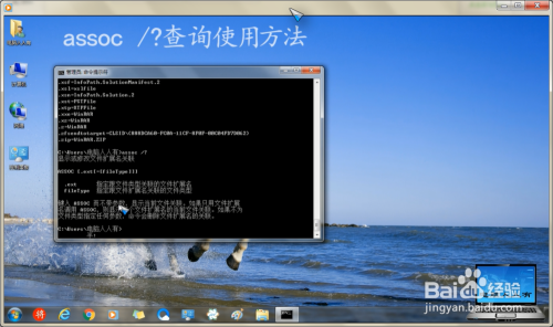 输入号令可以查询利用方式(按回车键执行号令):assoc /?