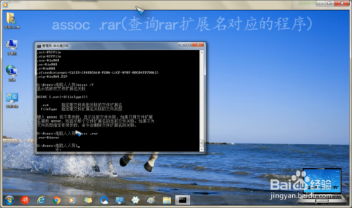 号令后面带扩展名的参数,就可以显示该扩展名所对应的可以打开此扩展名的法式。好比:assoc .rar (按回车键执行号令)