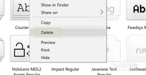 要删除字体,只需右键单击所选字体并选择“删除” 。