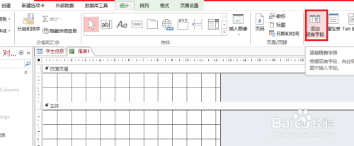这时,界面呈现报表模板,点击东西选项组里的【添加现有字段】。
