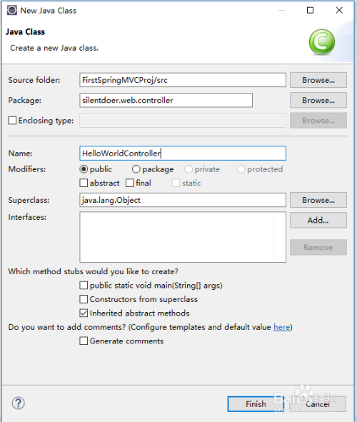 接下来对silentdoer.web.controller右键,New-Class新建一个类名为HelloWorldController,如图: