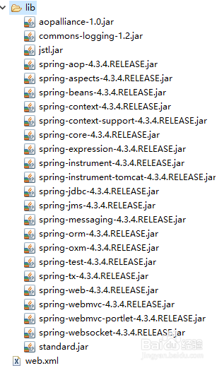 将项目所需的SpringMVC包添加到项目中,步调是先复制所有SpringMVC4.3.4版本的jar,然后对WEB-INF文件夹下的lib文件夹右键-粘贴(或Ctrl+v)即可(添加jar包到项目里据说有三种方式,我这里用最简单的方式添加),如图: