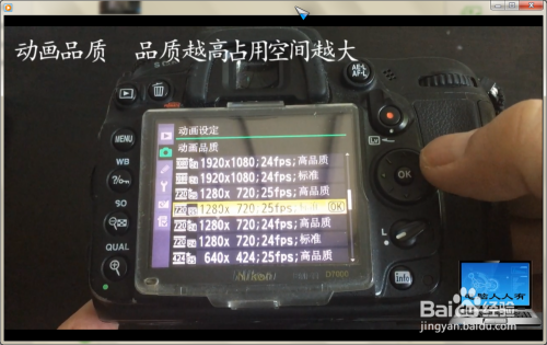 动画品质→设置品质越高,占用储存空间越年夜。凡是设置在尺度的画面品质已经足够了→OK键确认。