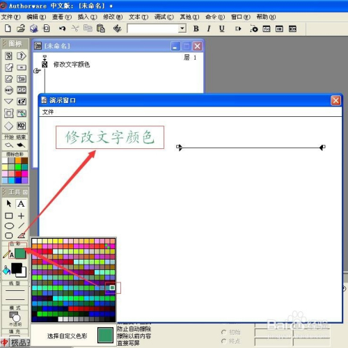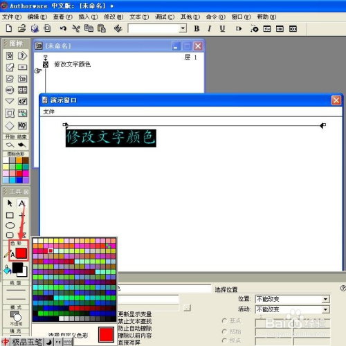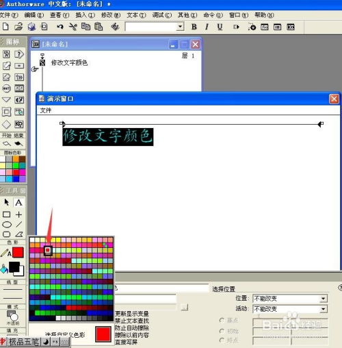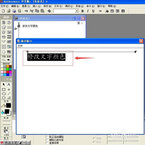 在用Authorware建造课件时,不免要输入文字来呈现讲授内容,有时为了凸起重点文字的显示结果,引起学生的注重,需要更改文字的颜色,那么怎么操作呢?