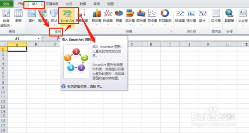 单击“插入”选项卡下“插图”选项组中的“SmartArt”,弹出
