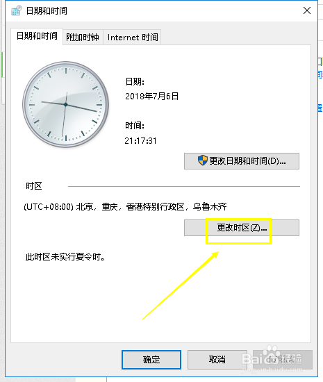 进入日期和时候选项卡,点击更改时区按钮,如下图所示