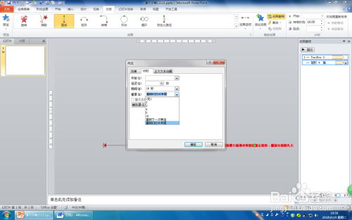 第九步:单击“动画”选项卡,在动画窗格中单选第一个动画结果,在“计时”组中设置“起头:单击时”、“持续时候:16”、“延迟:0”。