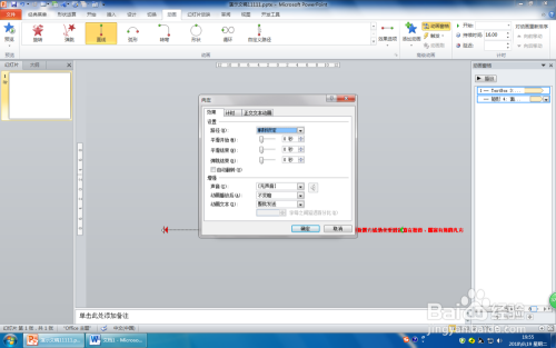 第三步:选中一个文本框,单击“动画”选项卡,在“高级动画”组中单击“添加动画”按钮,在睁开的下拉列表中单击“其他动作路径”,在弹出的“添加动作路径”对话框中选择“标的目的左”,然后单击“确定”。