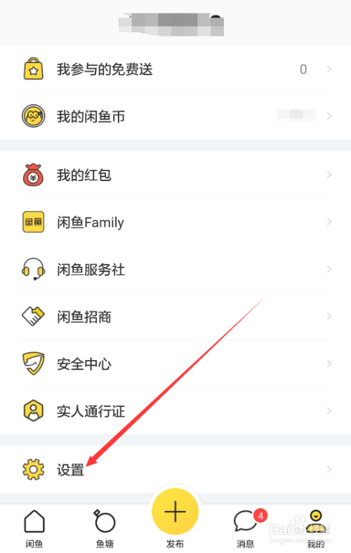 进入咸鱼我的界面后标的目的下滑动屏幕,然后找到【设置】并点击进入,如下图所示。