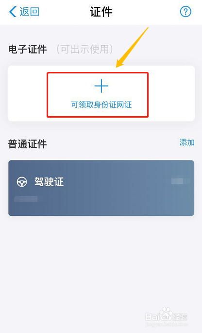 我们今天只以身份证网证打点为例,其他的流程根基上不异,点击"可领取身份证网证"选项今后,在添加证件页面继续点击"身份证网证";