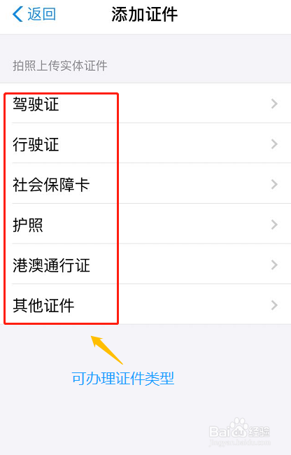 在证件页面的最上方就是打点身份证网证的,当然我们还可以打点驾驶证、社会保障卡以及护照等常用证件,如图所示;