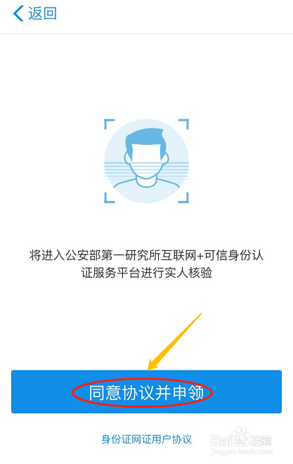 然后系统会进入到身份验证界面,我们需要同一和谈今后用手机相机对本身的脸部进行身份确认;