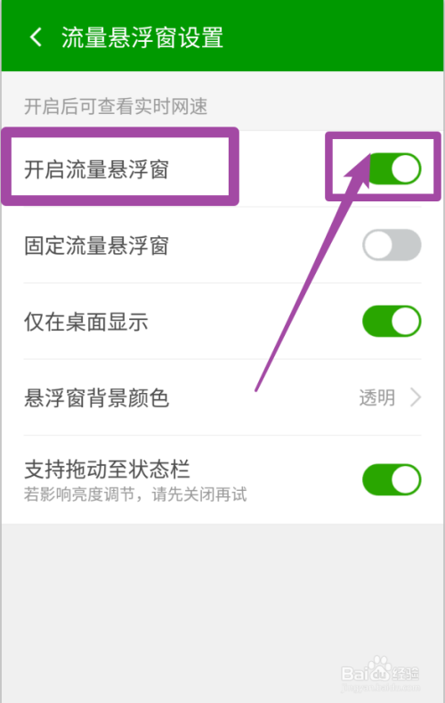 点击开启【流量流量悬浮窗】就完当作了,还可以点窜对悬浮窗