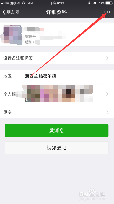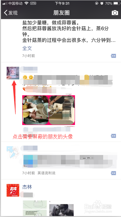 3. 进入朋友圈后,点击要屏障的伴侣的头像,如图