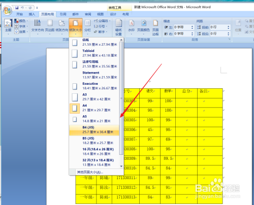 在睁开的菜单中我们可以经由过程拖动右侧的滚动条选择常见的纸张大小的规格,点击即可完当作选择。