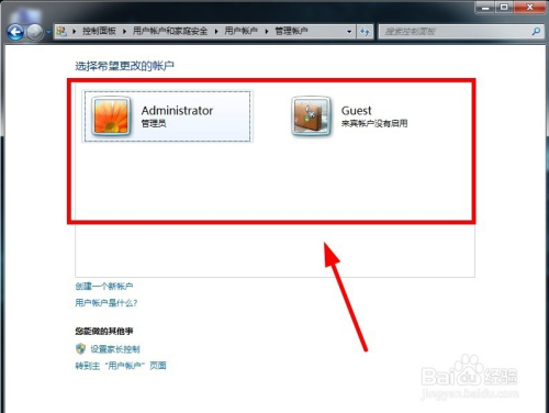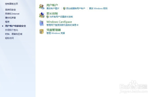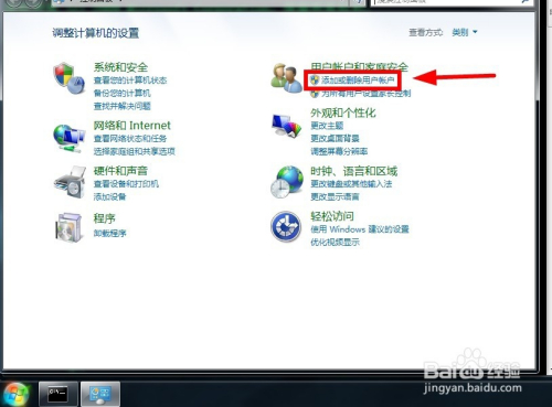 在节制面板中选择“添加或删除用户账户”