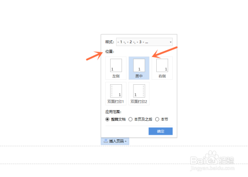 点击下方的“插入页码”按钮,选择点击“样式”右侧的按钮,选择页码的样式。