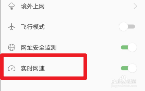 进入就可以看到最下方的【及时网速】点击打开(默认是封闭状况)